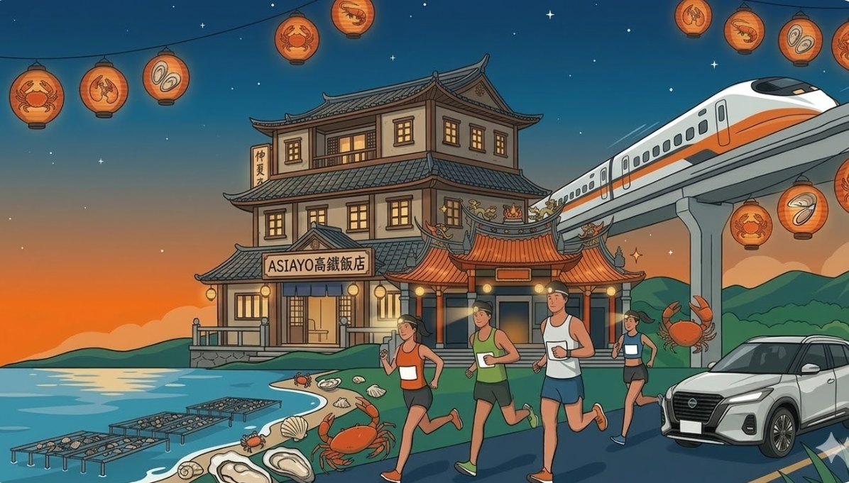 • AsiaYo【2026將軍漁港馬拉松】方案內容:參賽權+ 台南精選住宿+ 高鐵來回2日自由行